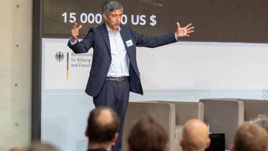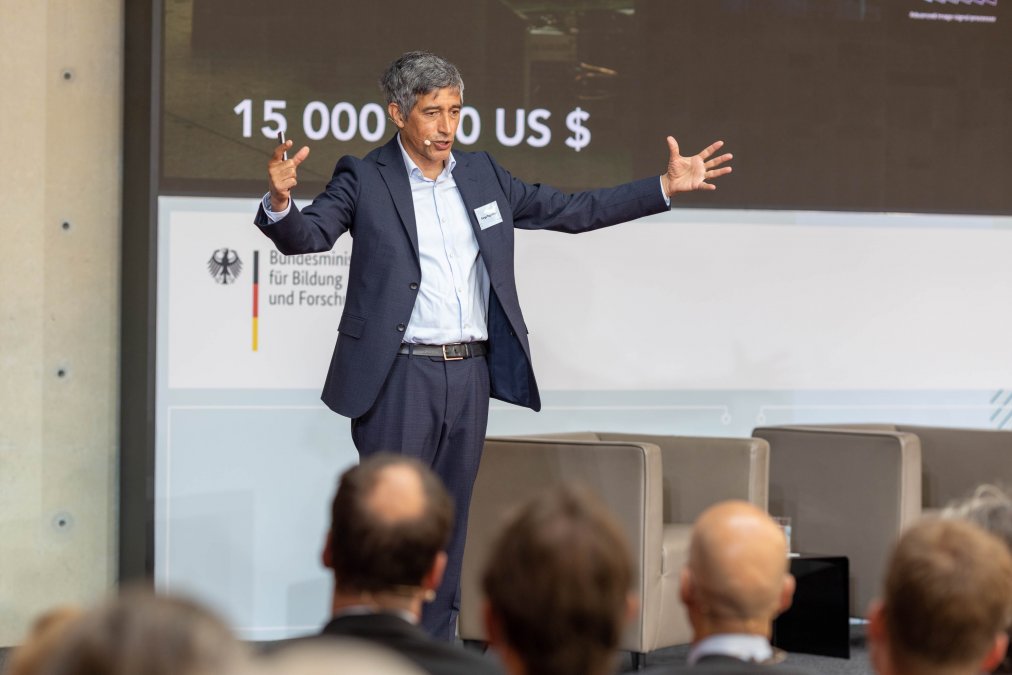 The great importance for society as a whole of the BMBF "Quantum Systems" research programme, which was presented at the event for the first time, was highlighted – along with other participants – by Jan Goetz, one of the founders of IQM Quantum Computers and one of 25 QSolid partners.