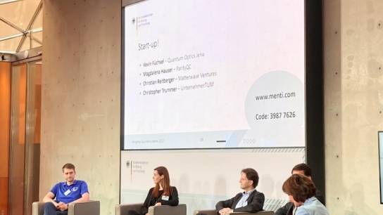 Together with industry colleagues, Magdalena Hauser from ParityQC – QSolid partner and leader of the work package “HPC Integration” – enriched the event with her experiences on structural and financial requirements for a successful business of emerging quantum systems companies.